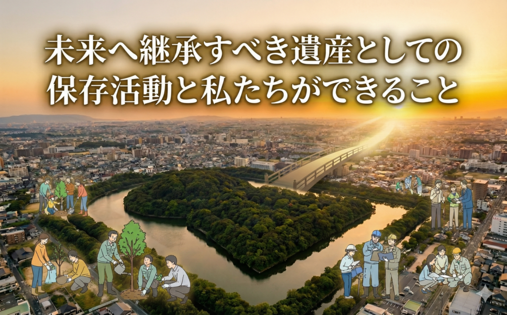 世界遺産登録は、人類共通の遺産として未来永劫守り抜くという国際的な誓約でもあります。しかし、都市のど真ん中に位置する百舌鳥・古市古墳群の保存は、決して容易なことではありません。風雨による浸食、植物の繁茂による墳丘の変形、そして開発圧力。様々な脅威からこの遺産を守るために、行政や専門家、そして地域住民がどのような努力を続けているのか。そして、一人の訪問者として私たちができる貢献とは何かについて考えます。
