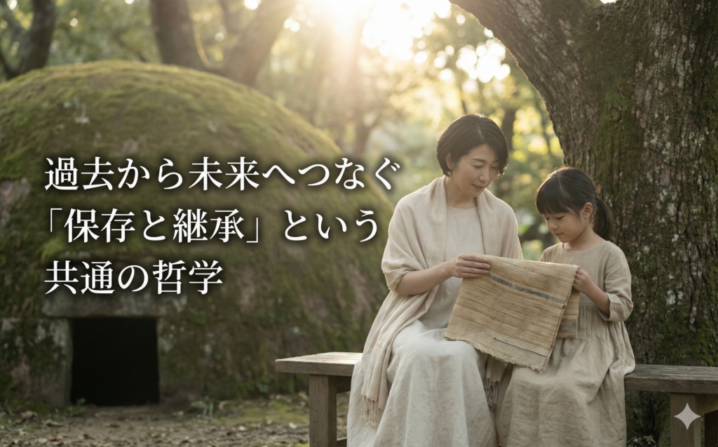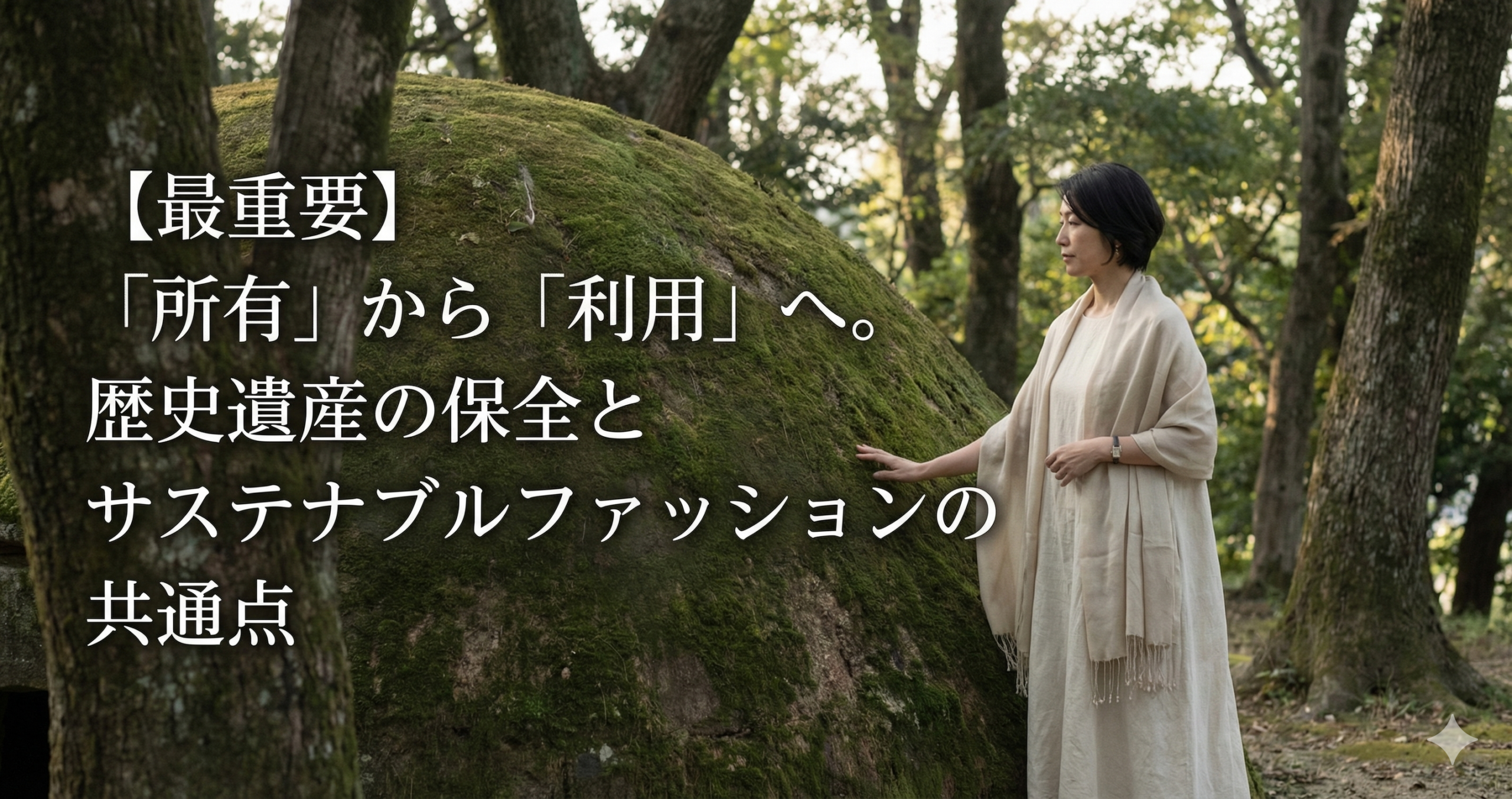 一見すると、1600年前の「古墳」と、現代の最新トレンドである「ファッション」は、全く無関係なもののように思えます。しかし、少し視座を高くして、それらを「資源」や「価値」という観点から捉え直すと、そこには驚くほど共通した哲学が流れていることに気づきます。それは、貴重なものを使い捨てにせず、大切に守り、次世代へと繋いでいくという「保存と継承(サステナビリティ)」の思想です。なぜ今、歴史を愛する私たちが、ファッションのあり方についても考えるべきなのか。その深いつながりについて紐解いていきます。